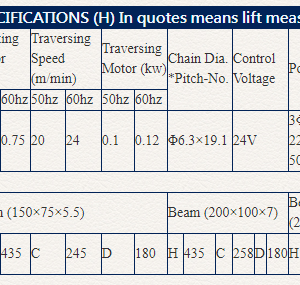 DANH SÁCH CÁC MẪU PALANG XÍCH ĐIỆN 500KG