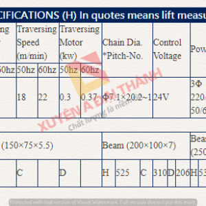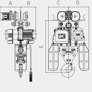 Review về thông số chi tiết và bản vẽ kỹ thuật của pa lăng điện 1 tấn biến tần cố định Samsung Hoist: