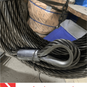 - 2 sling cáp thép – D20mm x 2m: Hai cáp thép có chiều dài 2M tạo thành một dây cáp thép được xoắn lại theo công thức 6×36+IWRC và ở hai đầu cáp được cuộn lại thành một vòng khuyên, và được kẹp chì chắc chắn từ máy ép công nghiệp chuyên dụng. Được gọi là đầu mắt. Ở hai đầu mắt được lót cáp tạo thành đầu mắt cứng hoặc không có lót cáp được gọi là đầu mắt mềm.