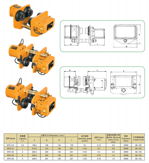 Thông Số Kỹ Thuật Con Chạy Điện 1 Tấn – Model KPX-01 – Kawasaki