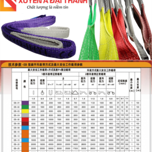 Bảng thông số kỹ thuât của sản phẩm Dây cáp vải cẩu hàng