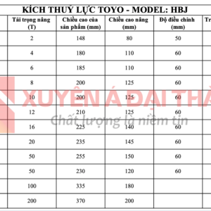 Thông số kỹ thuật của Kích thuỷ lực TOYO – Model: HBJ