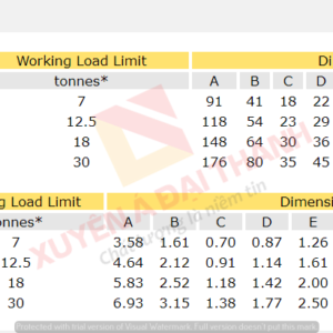 Thông Số Kỹ Thuật Mani 30 Tấn Bản Rộng – Chốt An Toàn YOKE Đài Loan