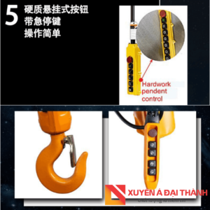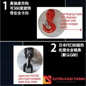 - Sản phẩm là palang xích cố định bằng đầu móc cẩu có khóa chốt an toàn