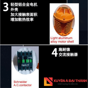 - 3. Vỏ động cơ từ hợp kim nhôm với trọng lượng nhẹ, tăng hiệu quả làm mát, diện tích bề mặt tiếp xúc.