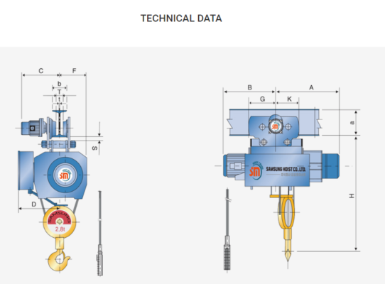 Thông Số Kỹ Thuật Của Pa Lăng Cáp Điện 2.8 Tấn – Dòng SN – SamSung Hàn Quốc