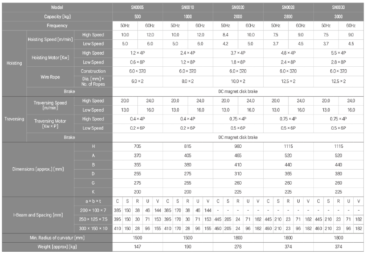 Pa Lăng Cáp Điện 2.8 Tấn Dầm Đơn – SamSung Hàn Quốc – Tổng Quan Về Dòng SN