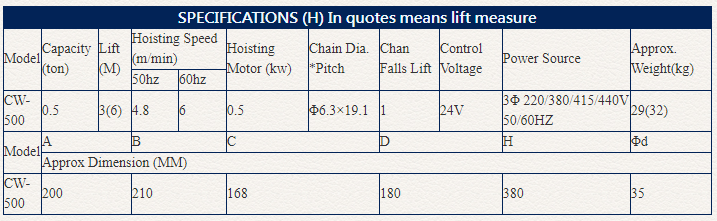 Palang Xích Điện Cố Định 500kg Kio – Đài Loan