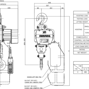 Palang Xích Điện Cố Định Loại 3000KG – SAMSUNG Hàn Quốc