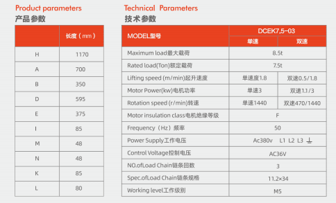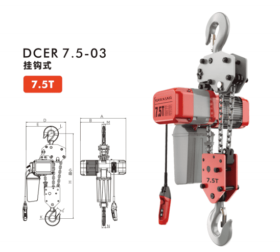Thông Số Kỹ Thuật Palang Xích Điện 7.5 Tấn – Model DCEK 7.5-03