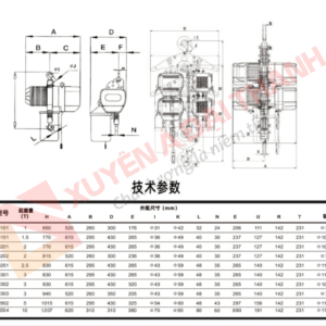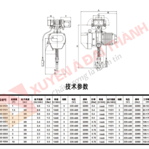 Thông số kỹ thuật của Palang xích điện TOYO dòng HHBD