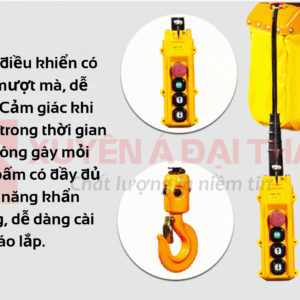 - Tay bấm điều khiển: Đây là bộ phận mà người vận hành sẽ sử dụng để điều khiển tời điện, bao gồm các nút bấm để nâng, hạ, dừng,…