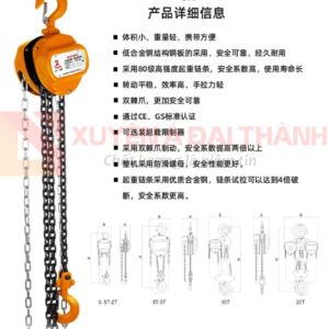 - Sử dụng xích tải cường độ cao: Xích tải được làm từ thép hợp kim 80 cấp, đảm bảo an toàn, bền bỉ và tuổi thọ cao.