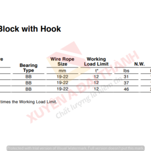 Thông Số Kỹ Thuật Model 8-562 Puly 12 Tấn – Ròng rọc 12 Tấn móc Cẩu 1 rãnh YOKE