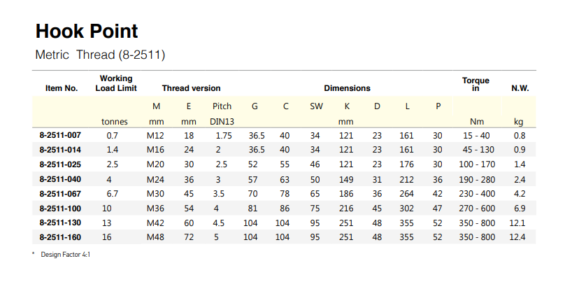 M16, M20, M24, M30, M36, M42, M48