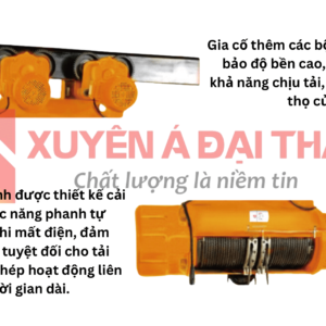 - Hệ thống phanh được thiết kế cải tiến, có chức năng phanh tự động khi mất điện, đảm bảo an toàn cho tải trọng và người vận hành.