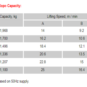 - Tất cả đánh giá tải trọng dựa trên lớp dây cáp thép trên cùng của trống. Đối với mỗi lớp giảm trên trống có khả năng kéo được tăng thêm 10% tải trọng nâng.